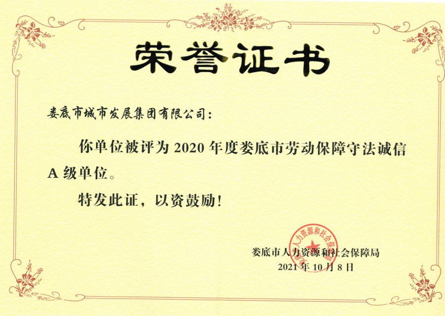 近日,婁底市人力資源和社會(huì)保障局公布了2020年度婁底市市本級(jí)用人單位勞動(dòng)保障守法誠(chéng)信等級(jí)評(píng)價(jià)結(jié)果,婁底市城市發(fā)展集團(tuán)有限公司被評(píng)為“勞動(dòng)保障守法誠(chéng)信A級(jí)單位”。此次,婁底市千余家單位通過用人單位自主申報(bào)、市勞動(dòng)監(jiān)察局初審、征求相關(guān)部門意見、市人社局審核、網(wǎng)上公示后共優(yōu)選出45家A級(jí)單位。這也是市城發(fā)集團(tuán)連續(xù)第四年獲評(píng)此榮譽(yù)。